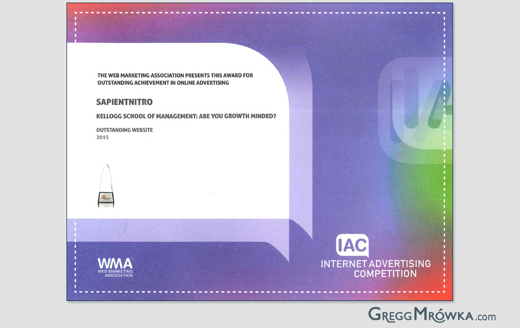 Web Marketing Association's Outstanding Achievment in Online Advertising 2015 (Click Here to Enlarge)