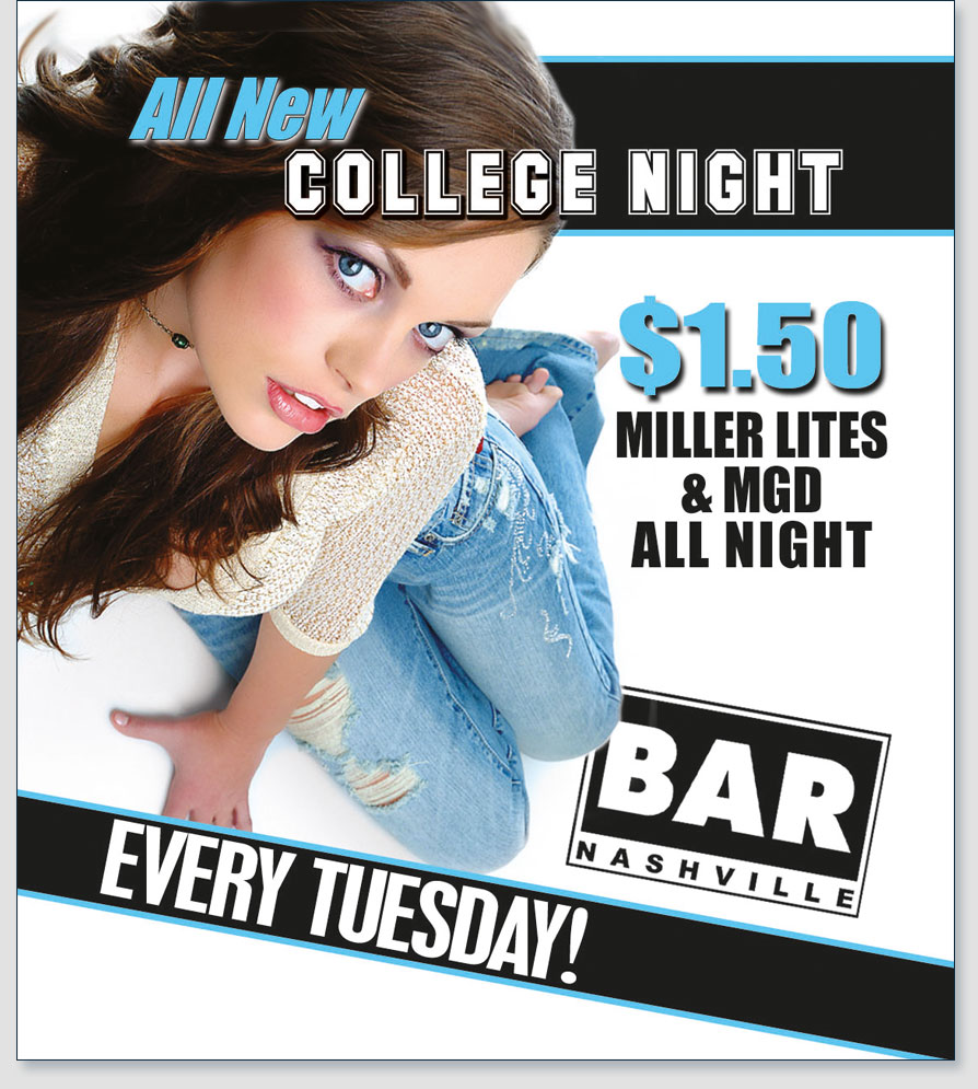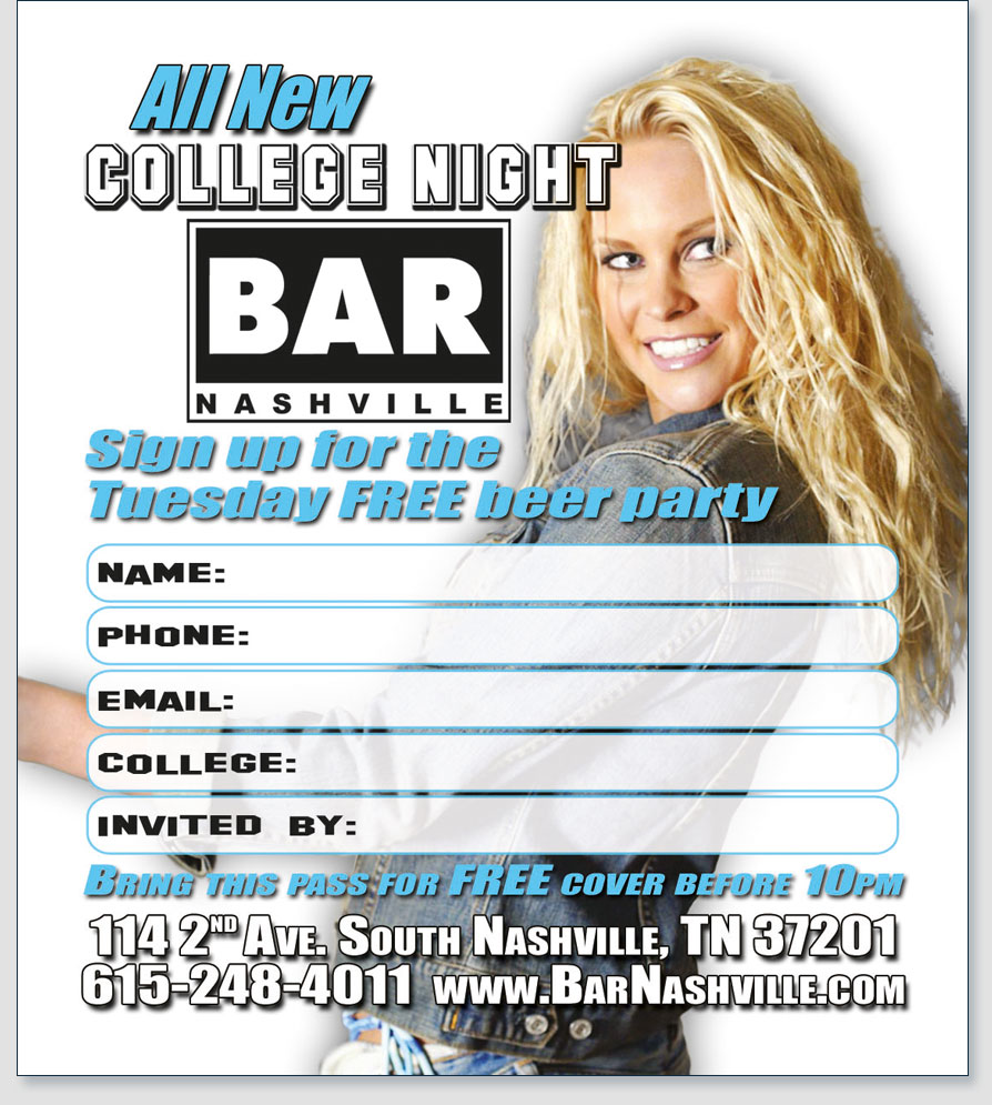 Bar Nashville College Night Flyer - Back (Click Here to Enlarge)
