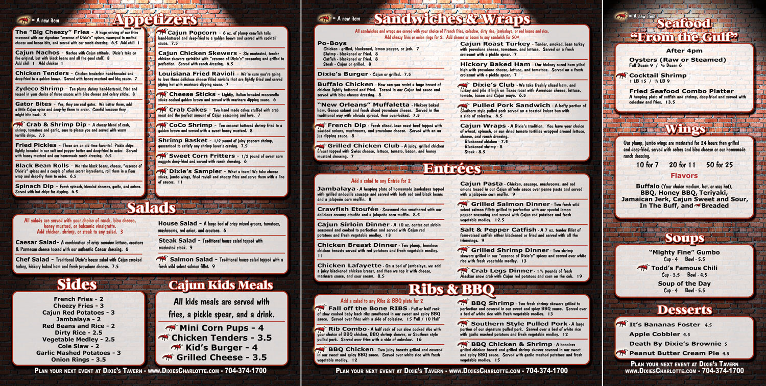 Dixie's Tavern 2006 Food Menu (Front) (Click Here to Enlarge)