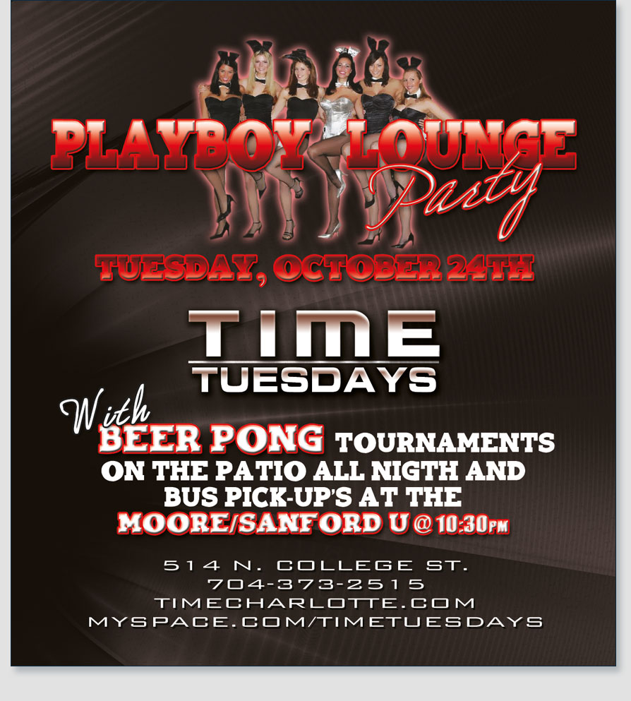 While a graphic designer at Bar Management Group, I designed countless ads and print materials for. This Time Lounge Tuesdays flyer for Time Lounge was one of those many materials.